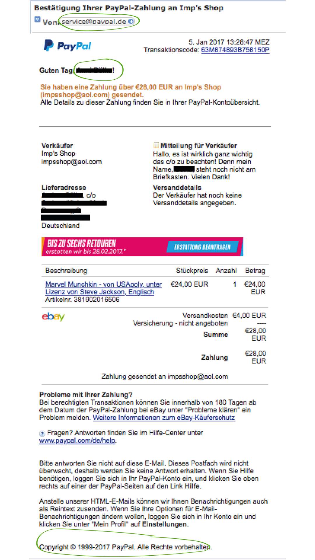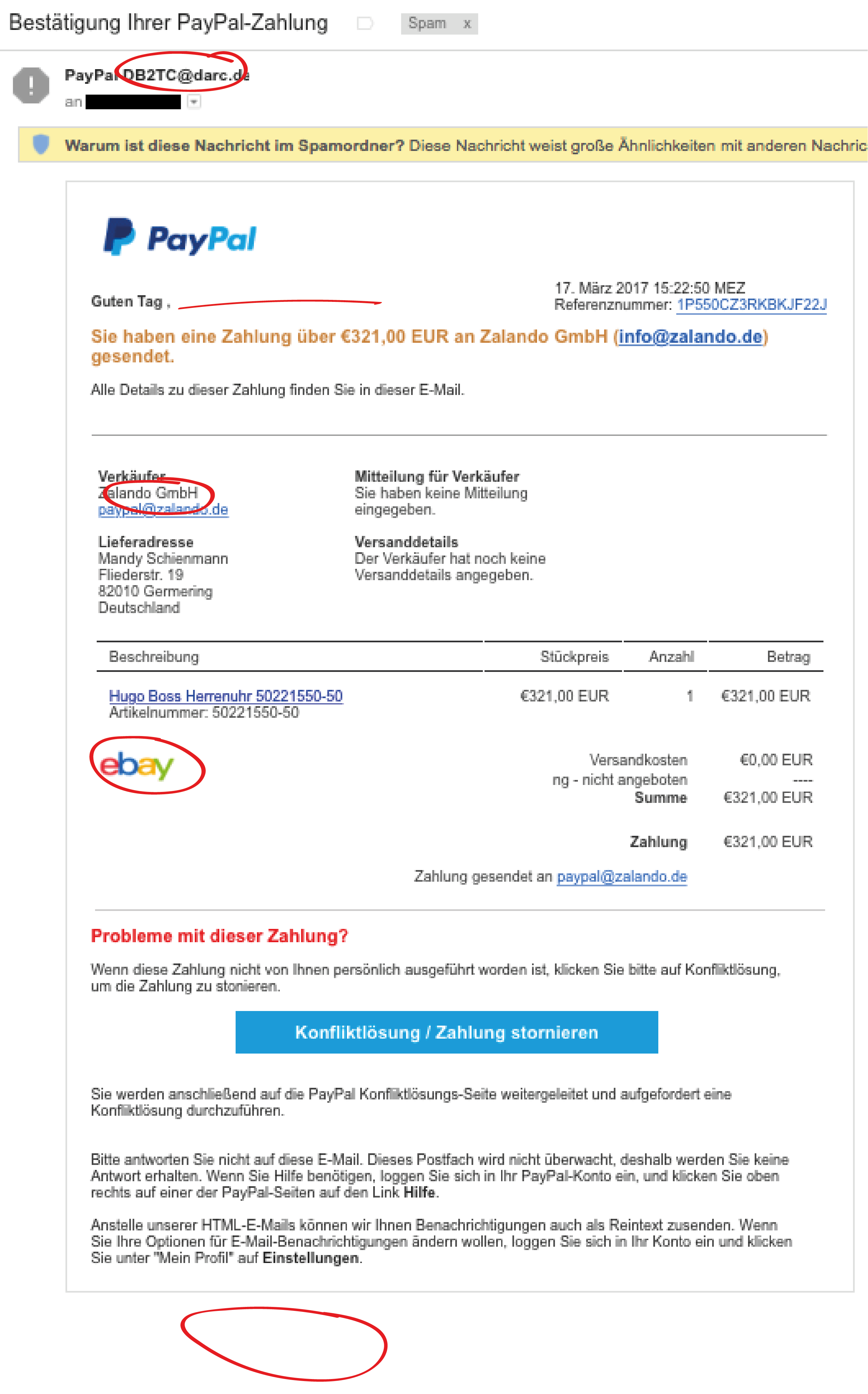 Im Folgenden sehen Sie, wie sich eine Phishing- von einer originalen E-Mail unterscheidet.